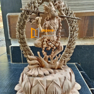 Patung ini dibuat dari bahan kayu berkualitas seperti kayu jati atau mahoni, yang dikenal akan kekuatan dan keindahannya. Pilihan bahan lainnya seperti batu resin atau bahan komposit juga tersedia untuk memenuhi kebutuhan khusus Anda. - Detail Ukiran yang Mengesankan