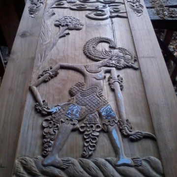 Pintu dengan dua buah daun pintu (kupu tarung) ini semakin indah dengan ornamen ukiran wayang yang di hiasi pemandangan. silahkan pesan karakter wayang yang sesuai dengan keinginan anda.